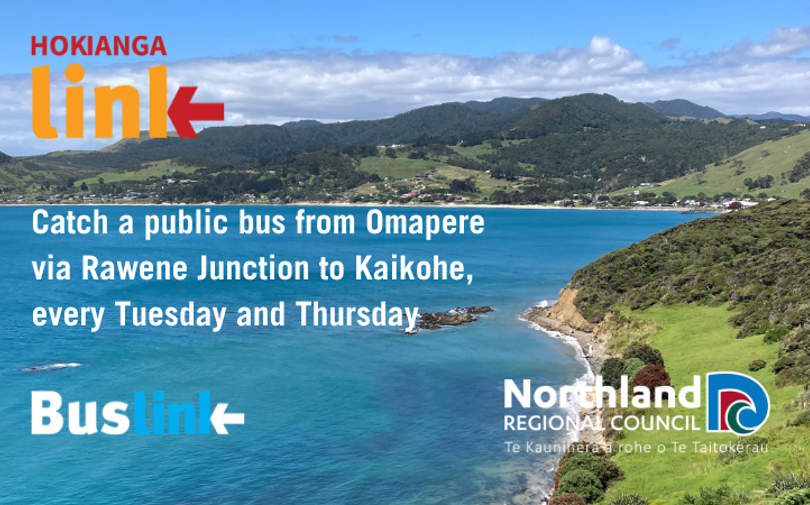Catch a public bus around one of the most beautiful places in Te Taitokerau, from Omapere/Opononi to Kaikohe via Rawene and back, every Tuesday and Thursday. Change at Kaikohe to travel on to Kerikeri / Waipapa.